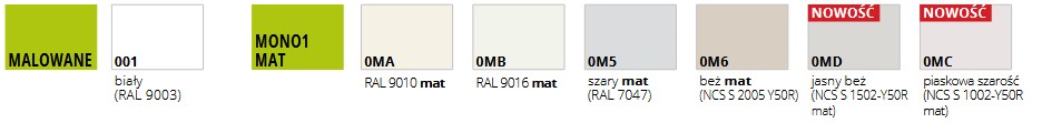 • Rodzaj wykończenia: Lakierowane / Malowane