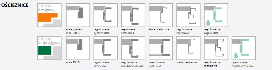 -system przylgowy (górna krawędź skrzydła w systemie bezprzylgowym) lub system bezprzylgowy DUO
